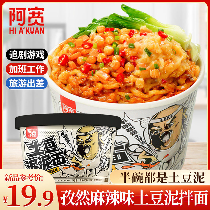 阿宽土豆泥泥拌面115g孜然麻辣味速食方便面夜宵泡面冲泡即食拌粉