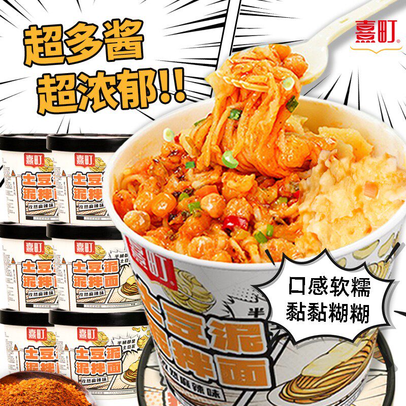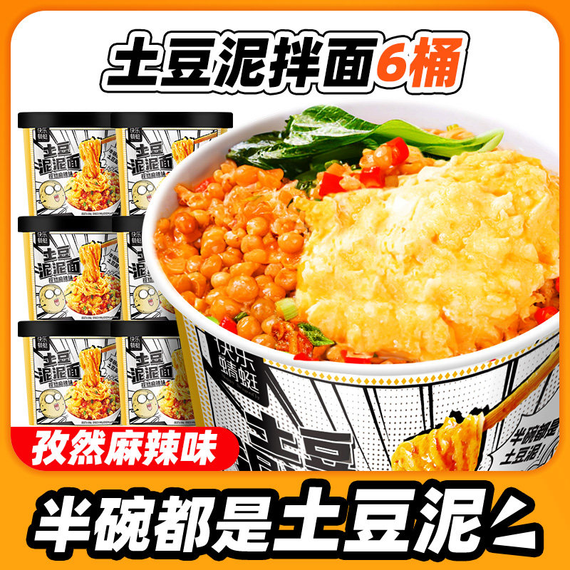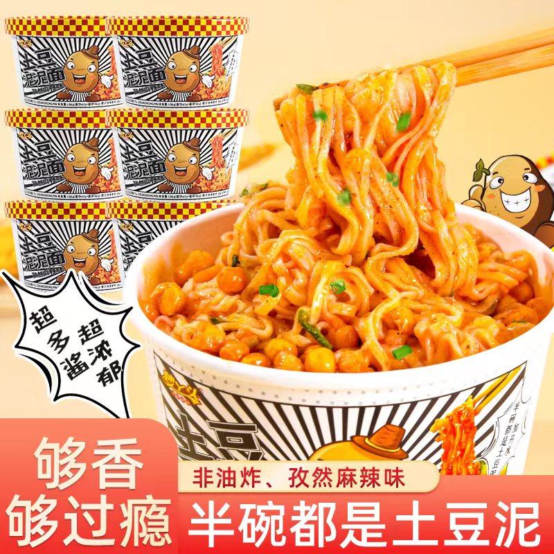 土豆泥泥面拌面孜然麻辣味泡面速食早餐宵夜土豆泥拌粉面条即食面