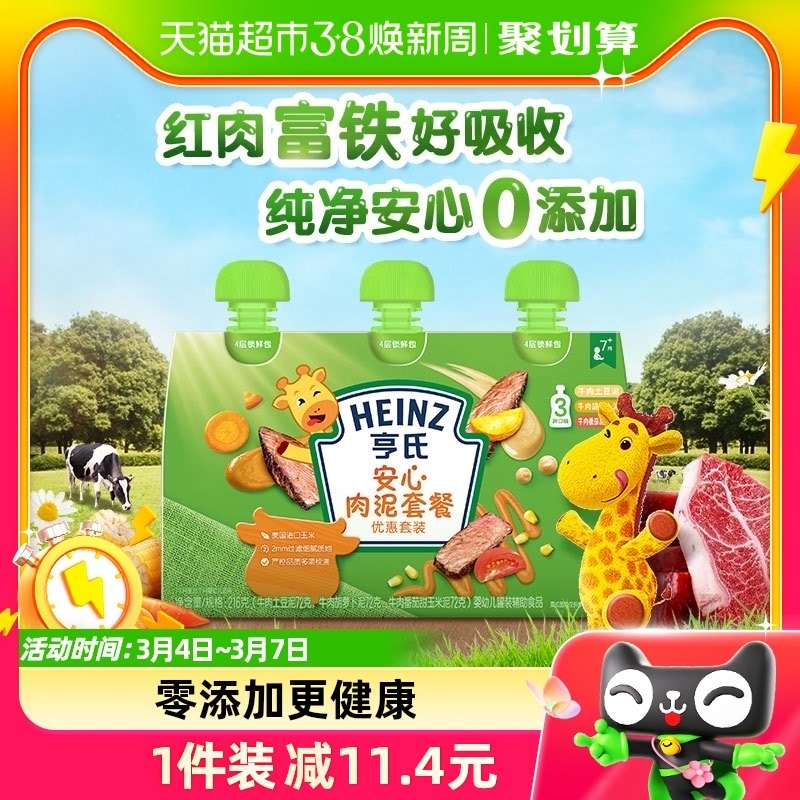 亨氏佐餐泥宝宝辅食安心肉泥海洋鱼泥婴幼儿童牛肉土豆番茄泥216g