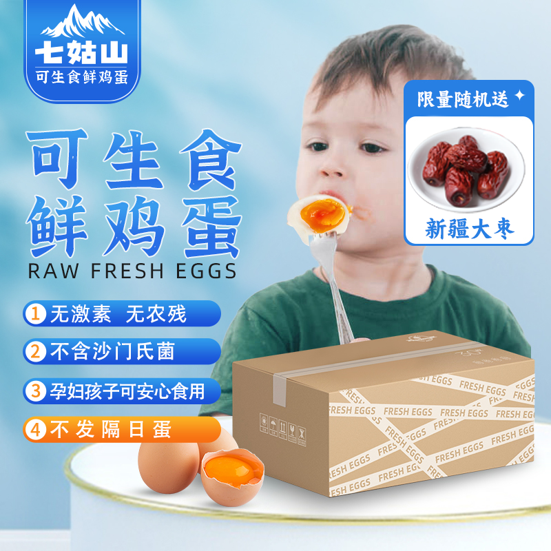 双桥七姑山可生食鲜鸡蛋30枚无菌无抗孕妇小孩营养土鸡蛋整箱礼盒