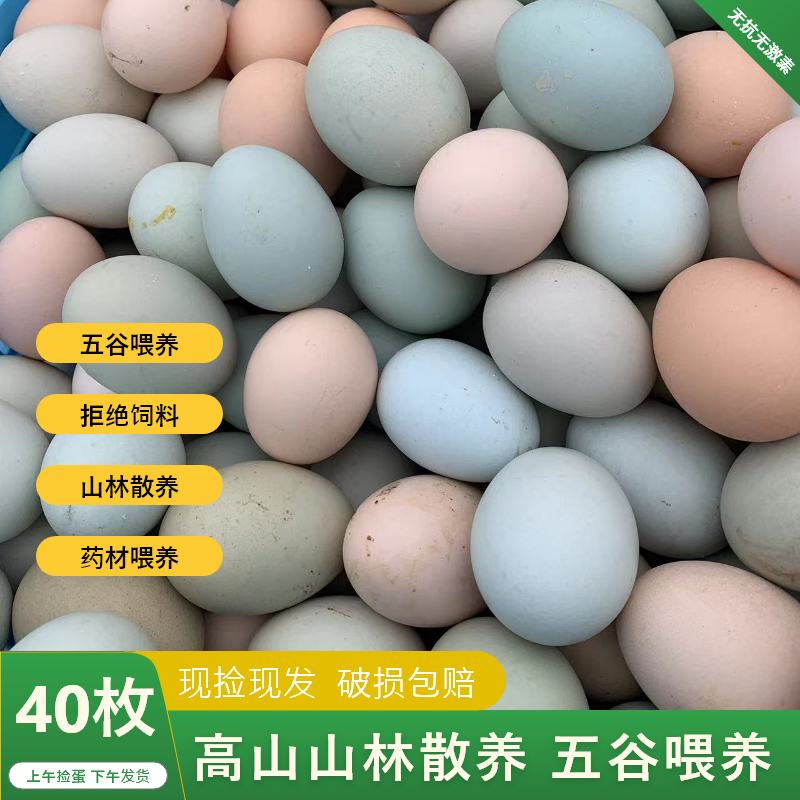【超值40枚】农家土鸡蛋柴鸡蛋笨鸡蛋草鸡蛋新鲜五谷杂粮喂养包邮