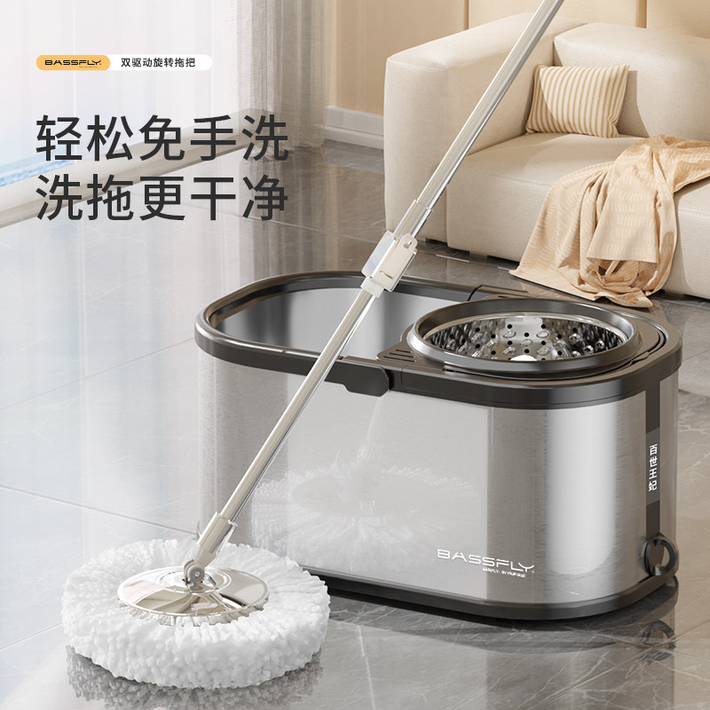 太太乐不锈钢分离旋转拖把桶脱水好神拖墩布拖地吸水拖布干湿两用