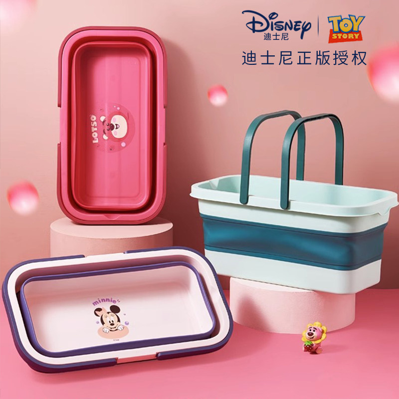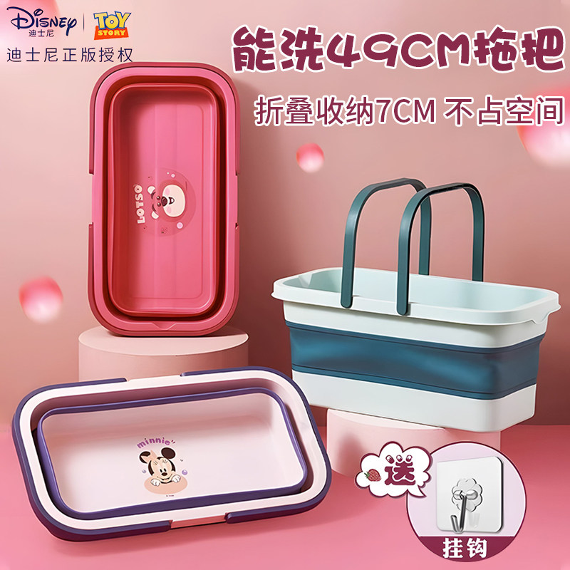 迪士尼拖把桶长方形可折叠加厚拖地拖布桶洗车刷地加厚提手大宽口