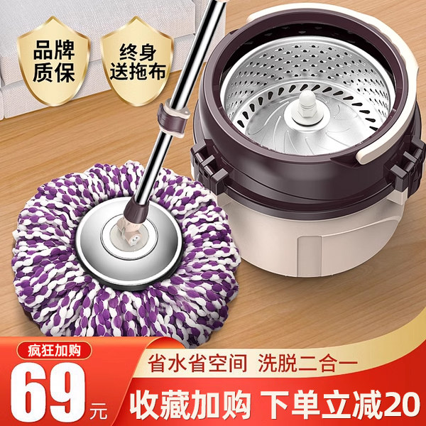 太太乐双驱动旋转拖把桶通用式免手洗懒人家用一拖地干湿两用自动