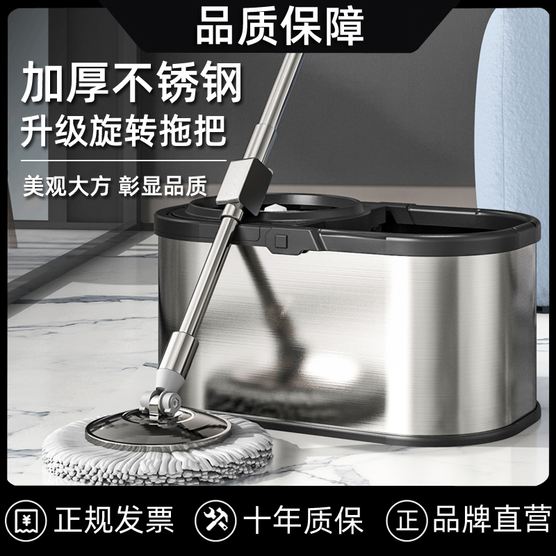 旋转式拖把免手洗家用一拖净拖地神器自动式不锈钢地拖通用拖布桶