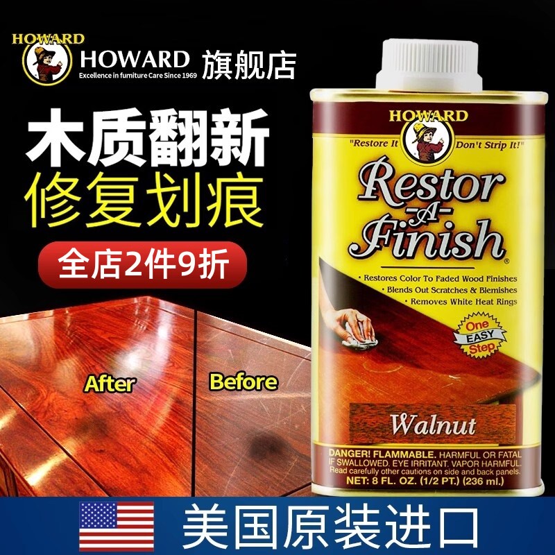 美国HOWARD实木地板翻新神器去划痕修复剂家具刮痕上色抛光打蜡油