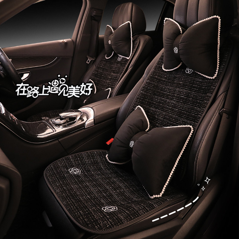 汽车坐垫四季通用山茶花女神款夏季后排车垫网红小香风车座垫椅套