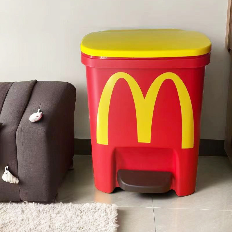 脚踏式卡通网红色个性创意麦当劳垃圾桶家用卧室可爱带盖式卫生桶