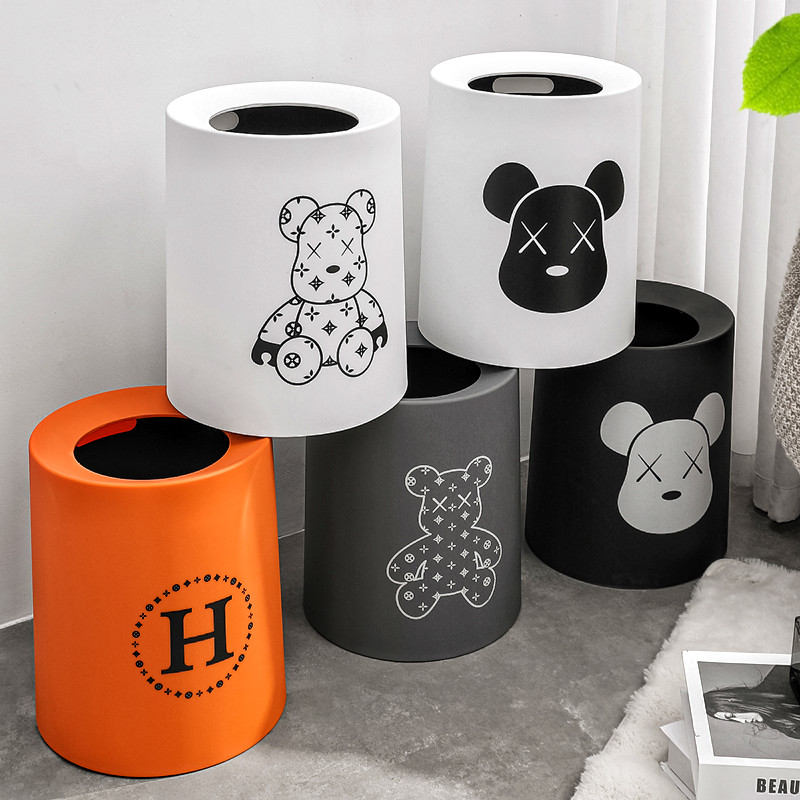 轻奢压圈垃圾桶家用简约客厅办公室厨房大容量镂空卧室卫生间纸篓