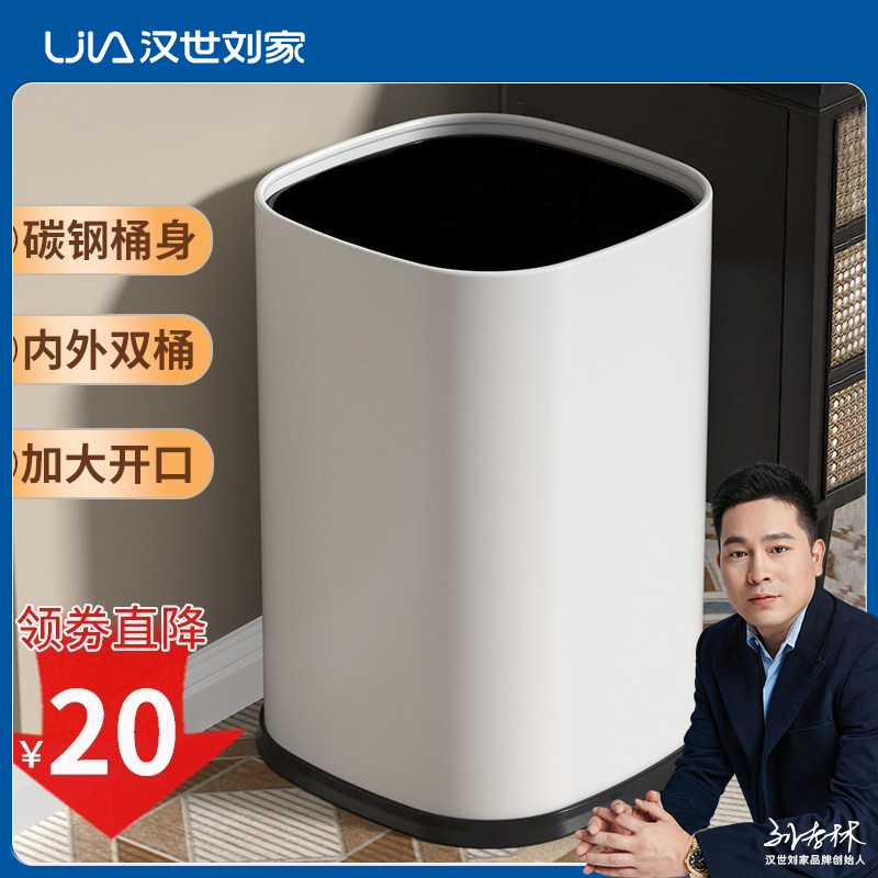 汉世刘家垃圾桶家用2023新款轻奢不锈钢厨房客厅厕所卧室大号容量