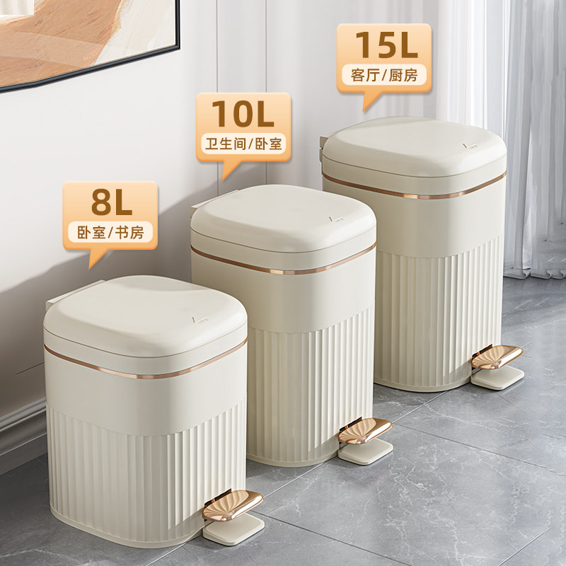 日本客厅垃圾桶轻奢高档高颜值脚踩家用2023新款卫生间脚踏式带盖