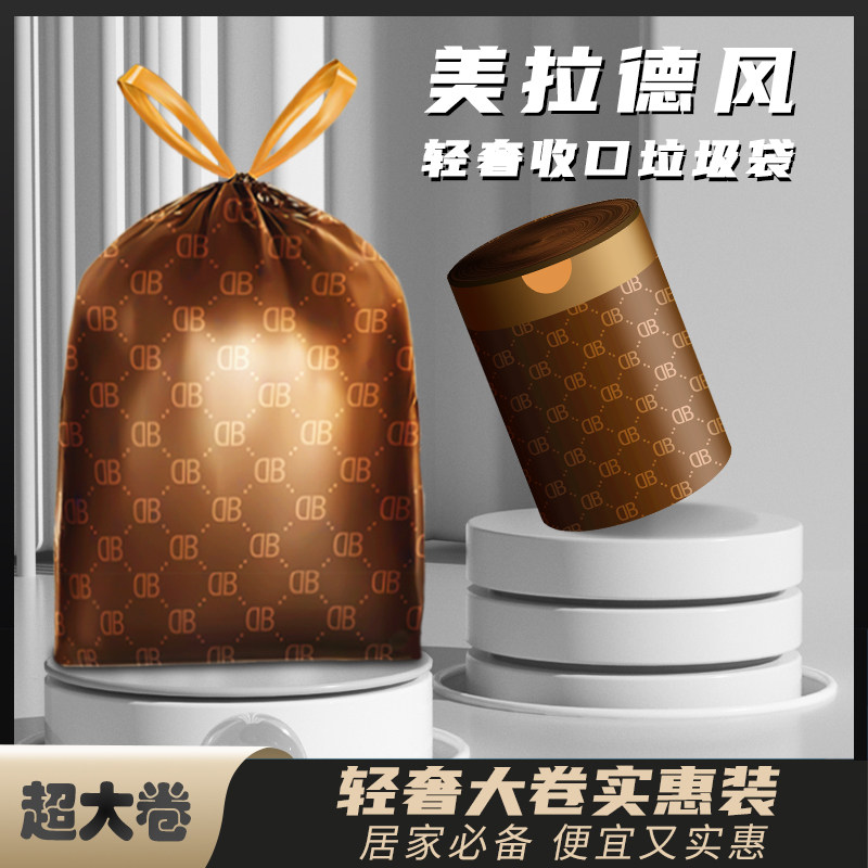 轻奢大卷垃圾袋家用抽绳加厚美拉德风厨房清洁手提式大号自动收口