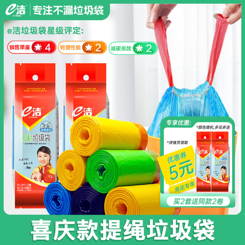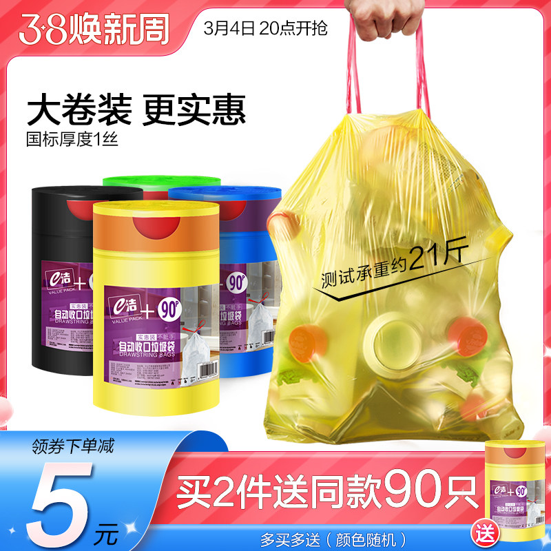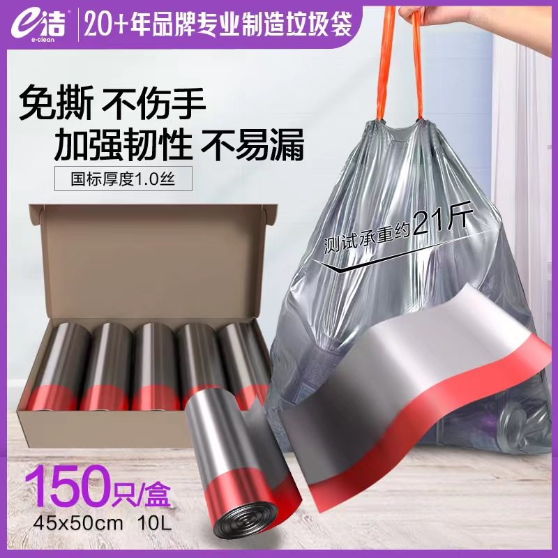 e洁抽绳式自动收口垃圾袋家用手提式加厚款厨房收纳袋大号塑料袋