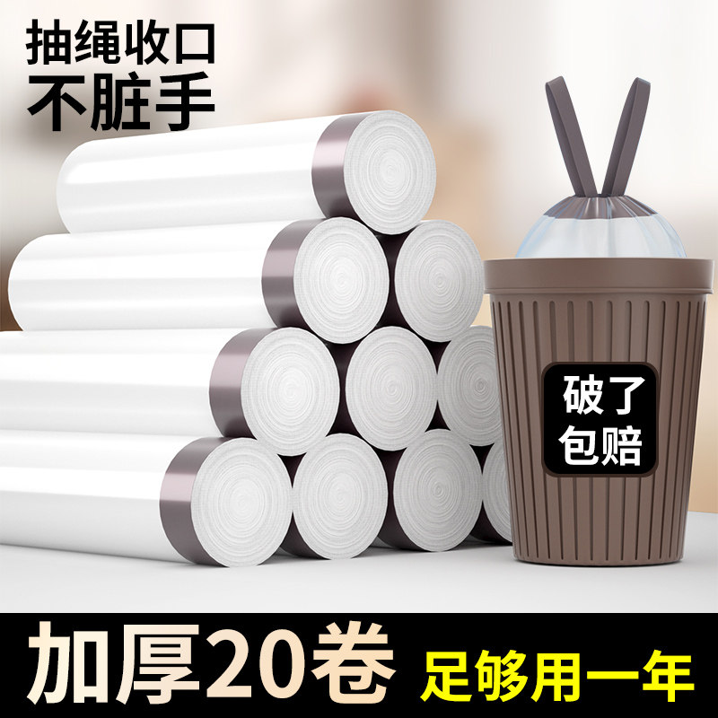 抽绳垃圾袋免撕家用加厚手提式厨房拉圾桶塑料袋子自动收口中大号