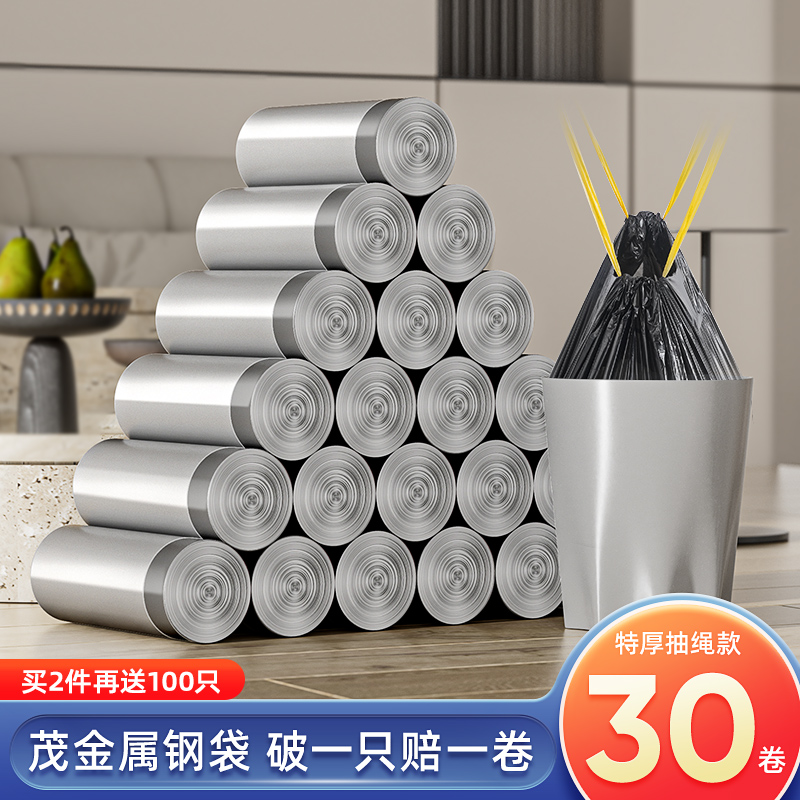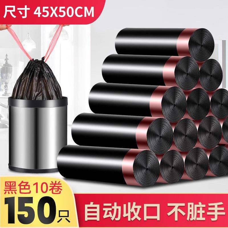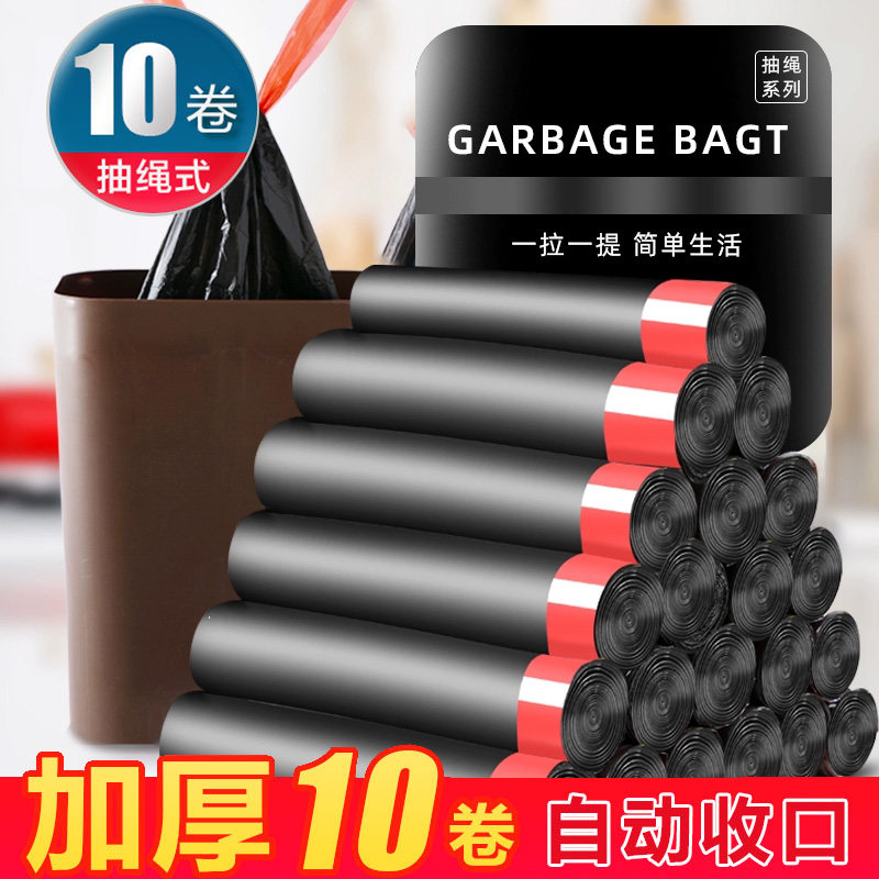 抽绳垃圾袋家用手提式厨房钢袋自动收口大号实惠装加厚清洁袋黑色