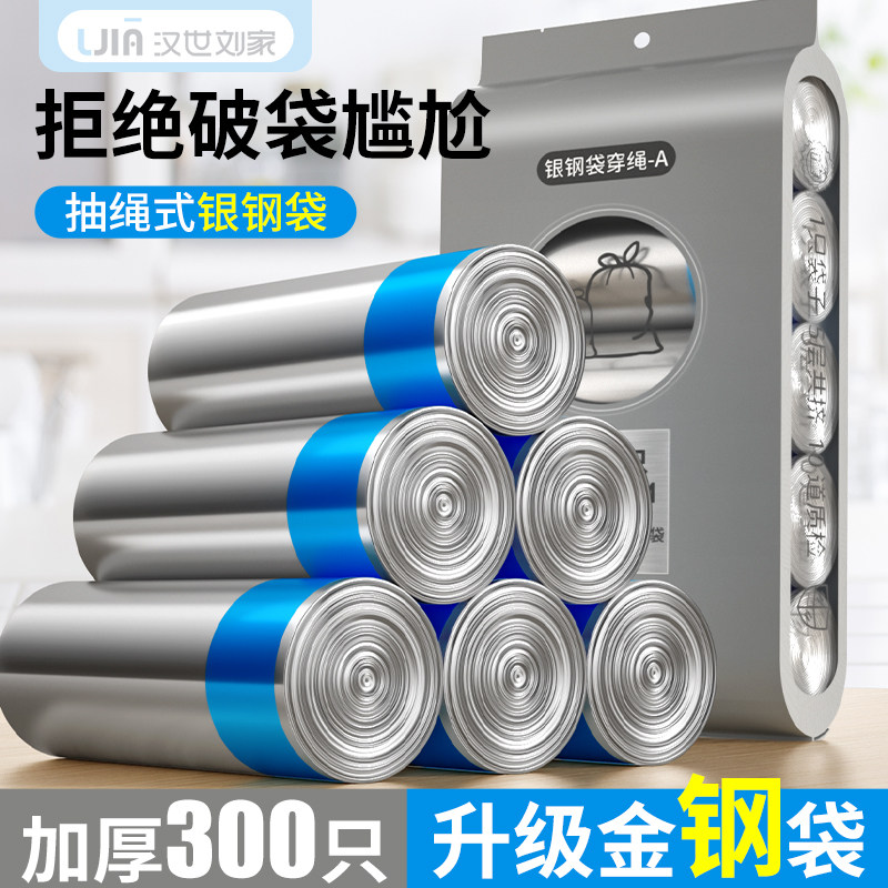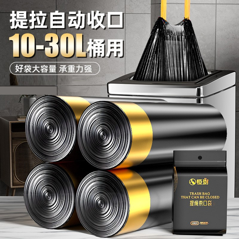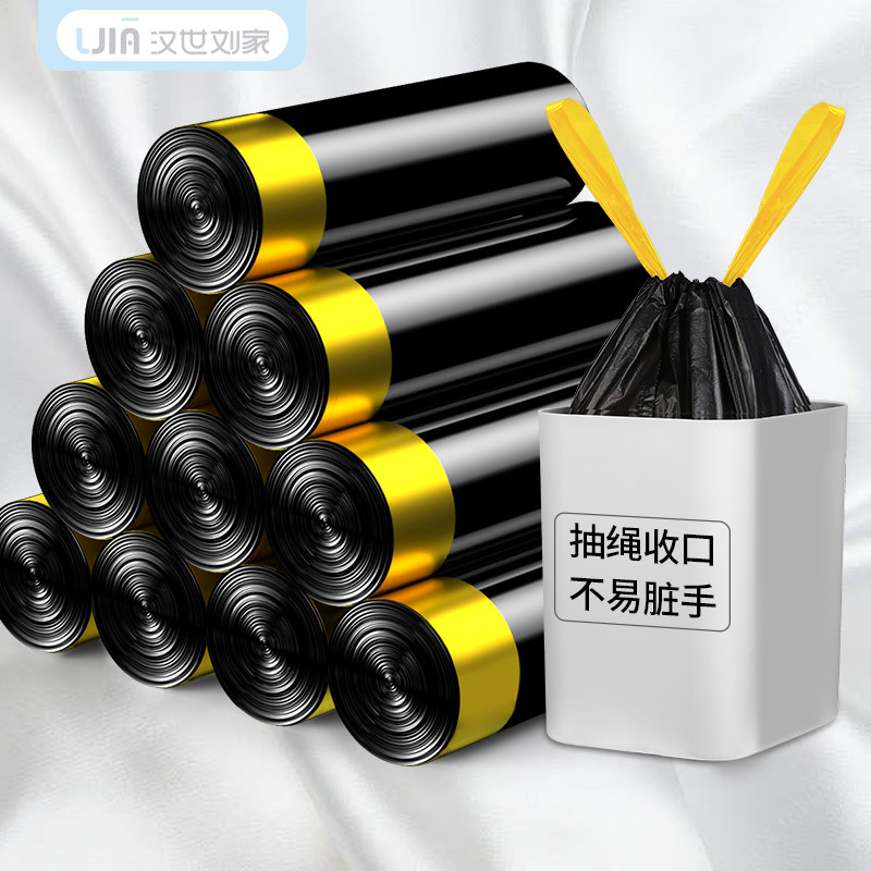 汉世刘家抽绳垃圾袋家用手提式大号加厚黑色商用批发实惠装厨房