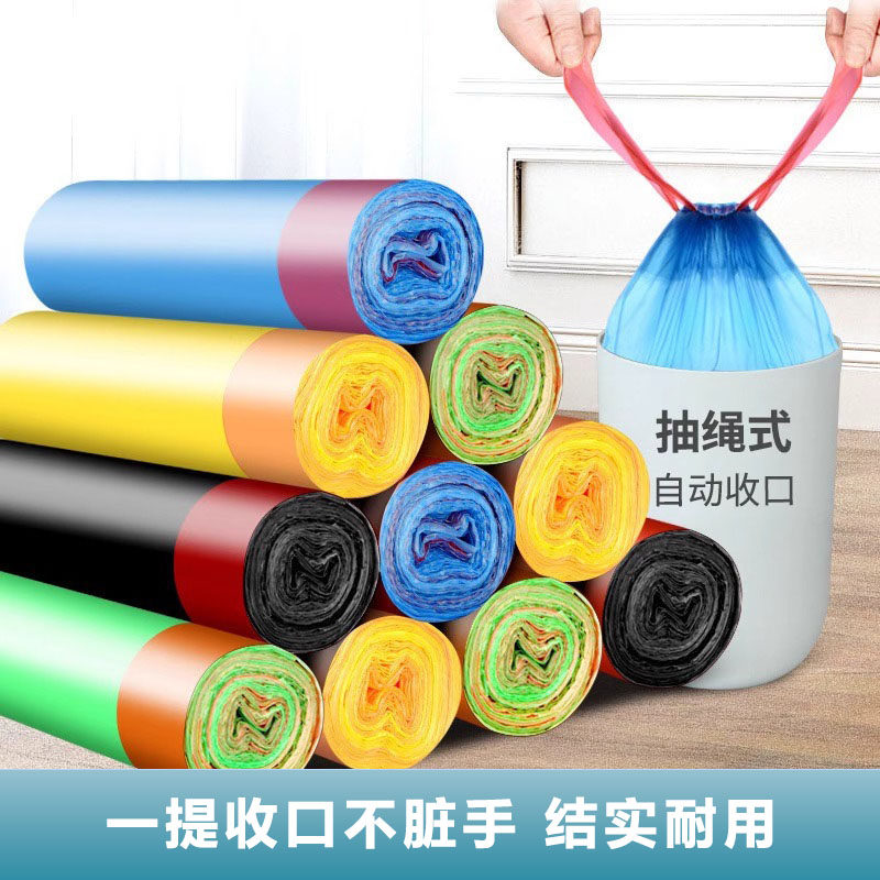 抽绳垃圾袋大号加厚家用一次性手提式自动收口彩色拉绳束口塑料袋
