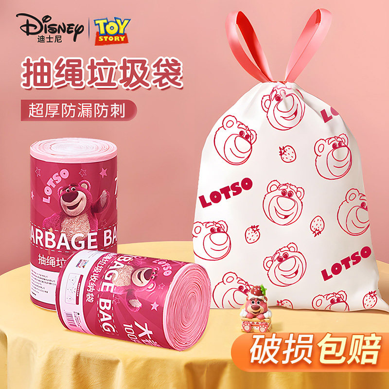 迪士尼大卷垃圾袋家用手提式加厚免撕抽绳厨房厕所大号收纳清洁袋