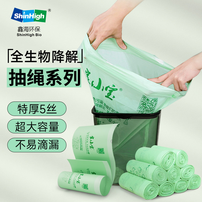 可全生物降解家用手提拉抽绳垃圾袋加厚大容量厨房绿色环保清洁袋