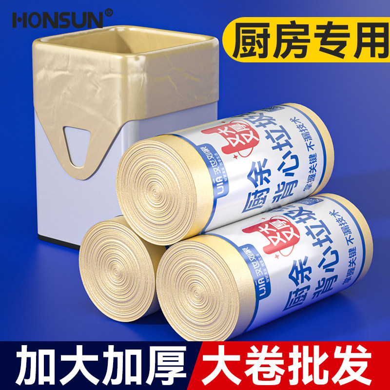 厨房专用垃圾袋抽绳式特厚家用厨余袋加厚大号手提式大容量塑料袋