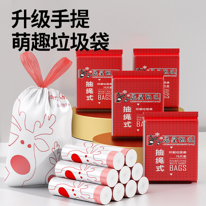 喜庆款抽绳垃圾袋家用加厚塑料袋学生宿舍家用厨房提绳袋