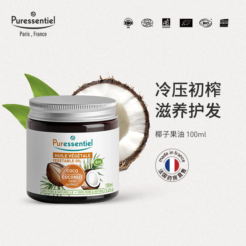 Puressentiel有机椰子油滋润身体按摩基础基底油精油100ml