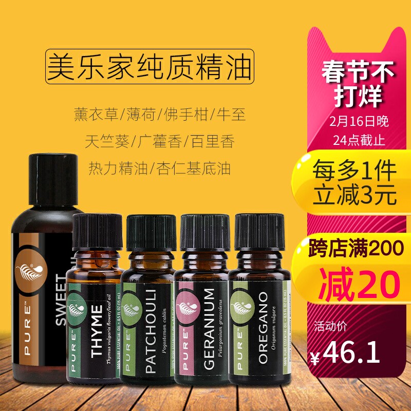 美乐家纯质精油薰衣草薄荷佛手柑牛至天竺葵广藿香百里香基底油