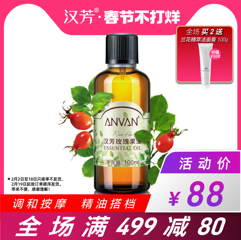 汉芳 玫瑰果油100ml 基底油滋润调配身体按摩基础精油 补水保湿