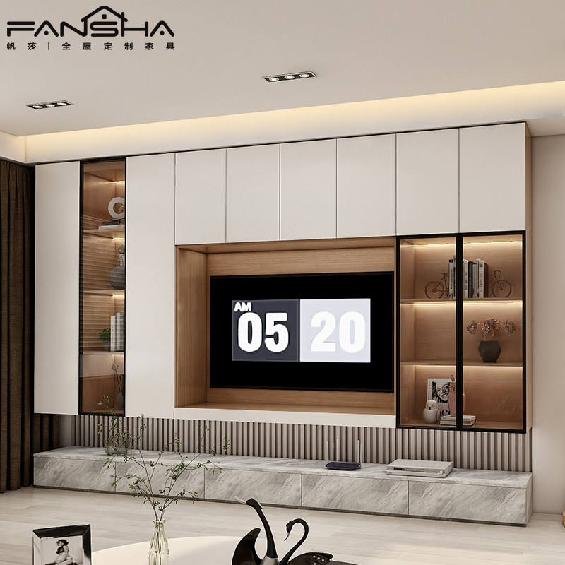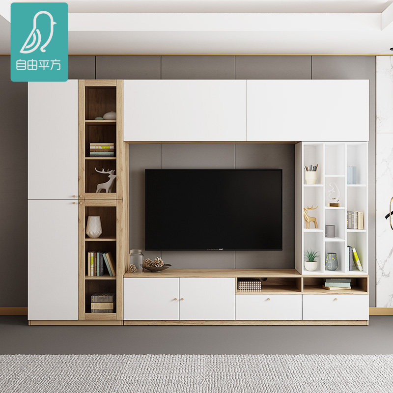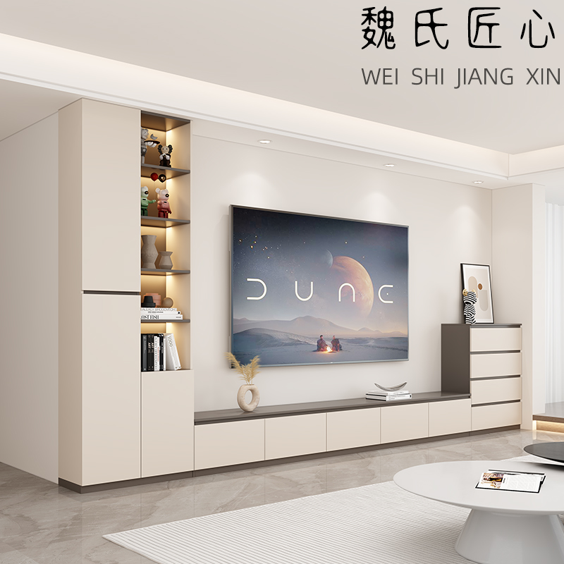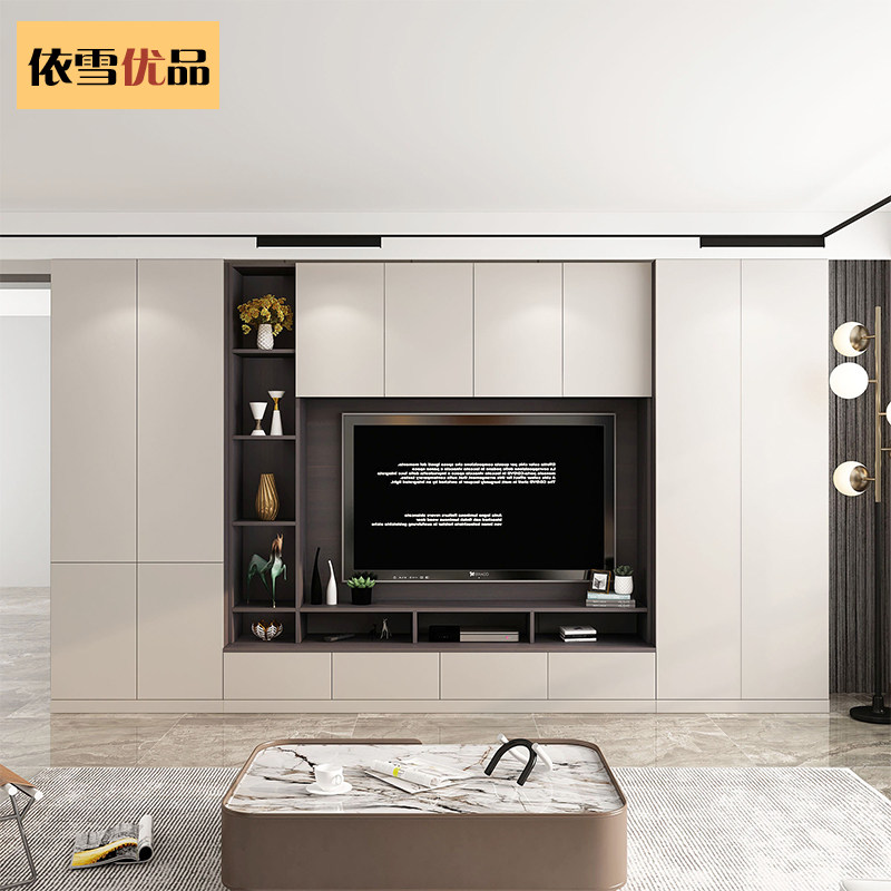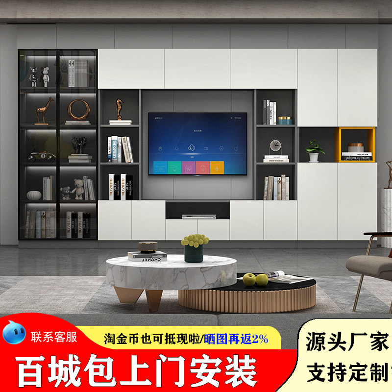 电视机柜简约现代客厅家用小户型背景墙柜收纳储物柜一体组合定制