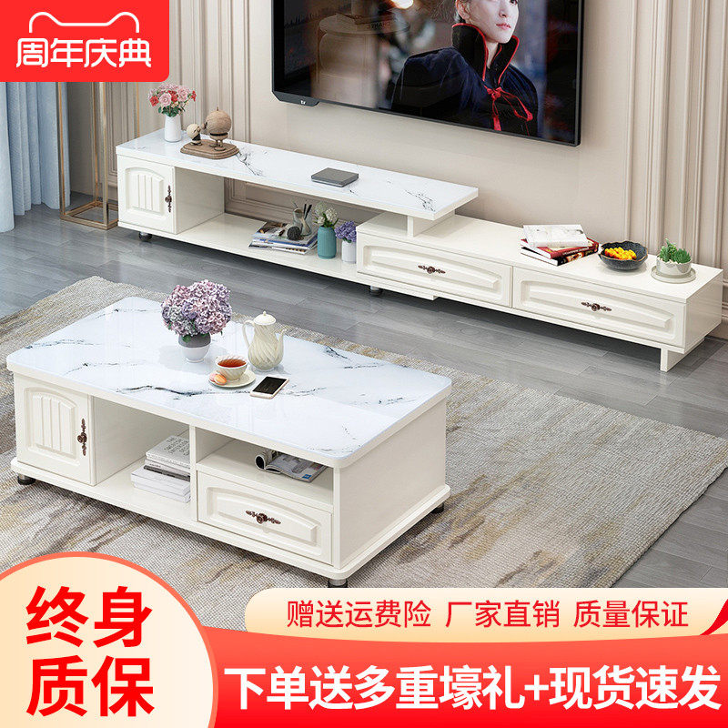 岩板茶几电视柜组合实木墙柜现代简约轻奢风可伸缩小户型电视机柜