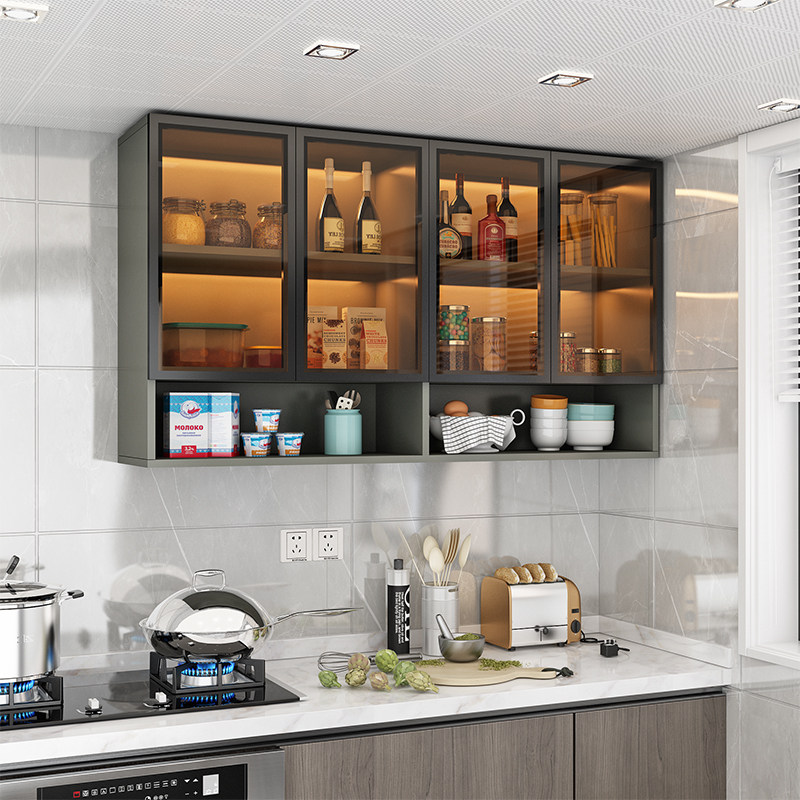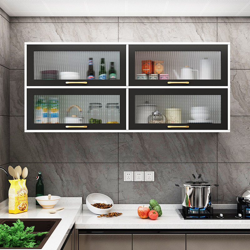 厨房吊柜下调料墙柜壁挂下方置物架玻璃上翻柜铝合金小吊柜置物柜