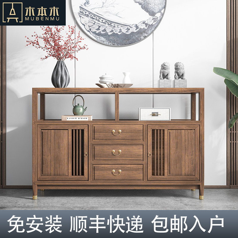 新中式餐边柜实木斗柜边柜榆木黑胡桃木矮柜储物柜简约日式靠墙柜
