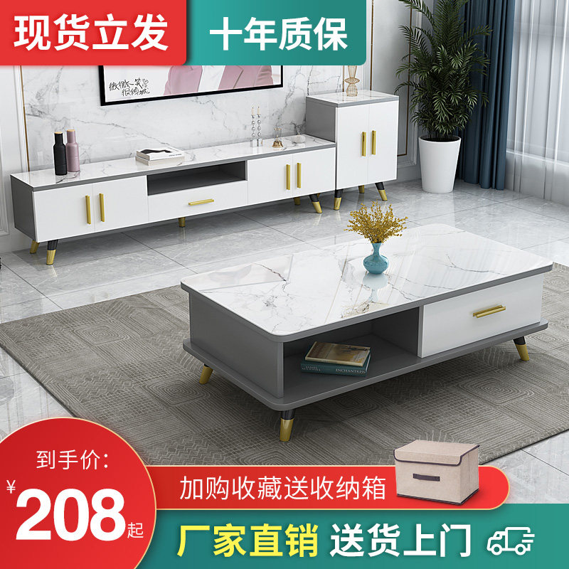 轻奢电视机柜现代简约小户型客厅玻璃墙柜北欧茶几组合柜家用地柜