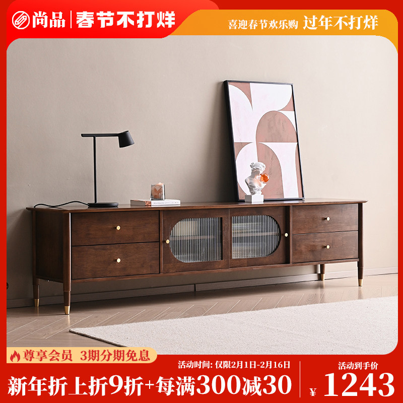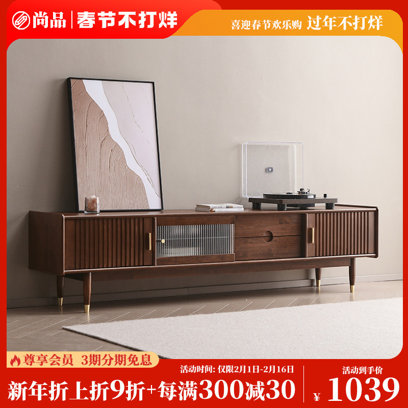 尚品全实木电视柜客厅家用简约现代小户型视听柜背景墙柜法式复古