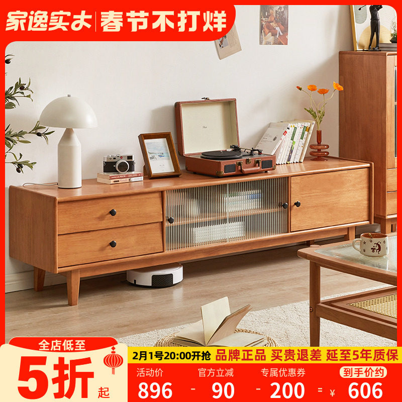 家逸实木茶几电视柜组合北欧原木家具简约现代樱桃木色小户型墙柜