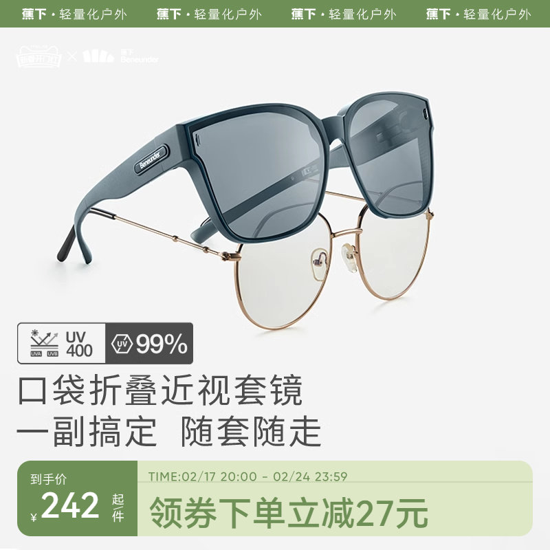 蕉下近视墨镜女FO31824方框可套眼镜男偏光太阳镜可折叠防晒套镜