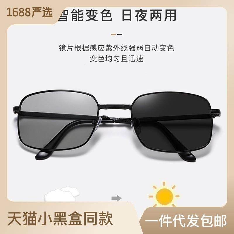 新款潮流男士金属偏光变色太阳镜便捷可折叠开车墨镜