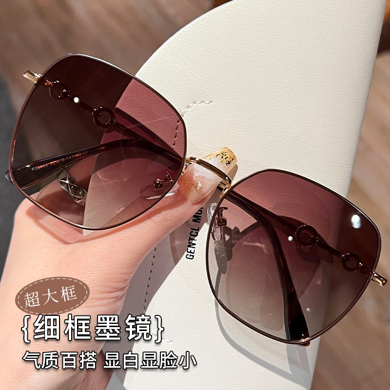 防紫外线墨镜女款高级感 偏光gm太阳眼镜2023新款 大脸显瘦金边