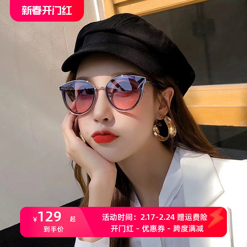 高级感腮红墨镜女网红猫眼gm太阳眼镜2023新款度假街拍红色显脸小