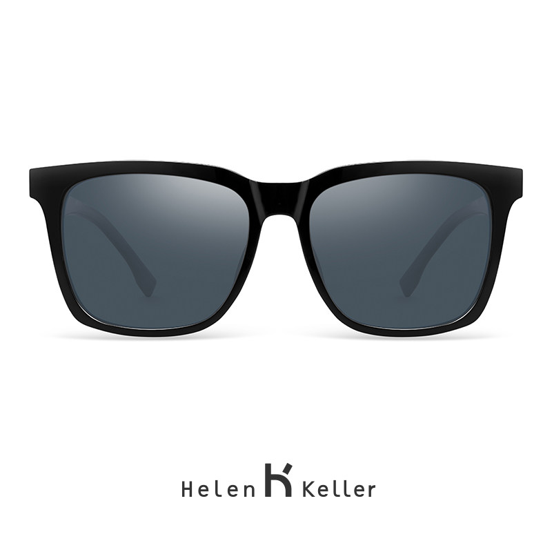 海伦凯勒偏光太阳眼镜开车墨镜方框型男可配带有近视度数的8752黑