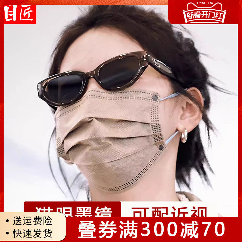 茶色防晒gm墨镜男女高级感 近视猫眼太阳眼镜 2023新款小脸夏季