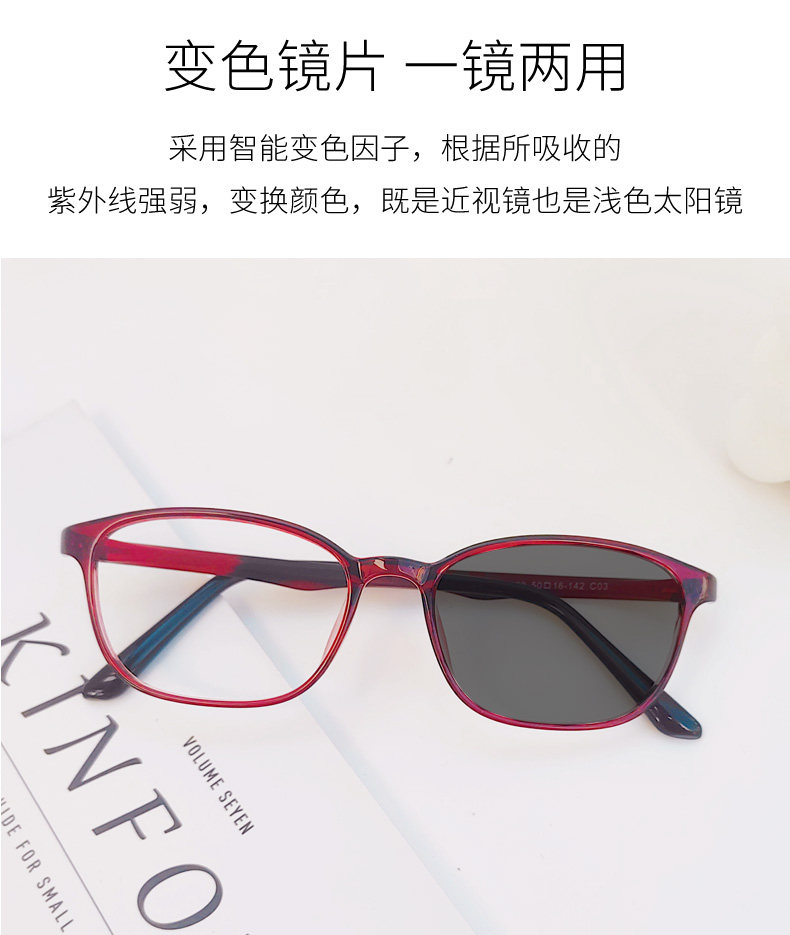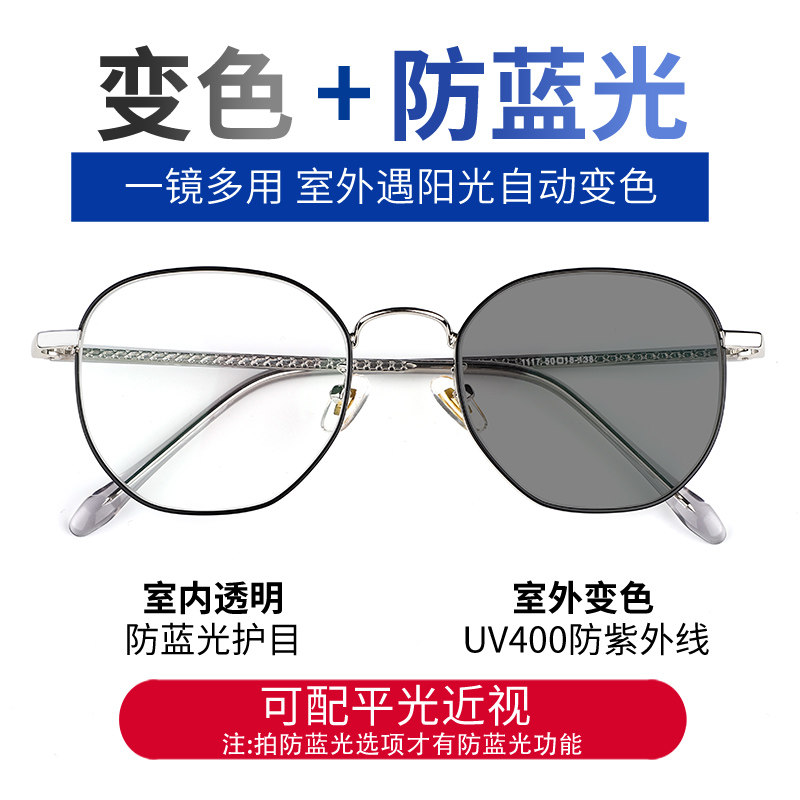 平光女款休闲全框潮变色电脑防蓝光辐射紫外线护目太阳镜近视眼镜