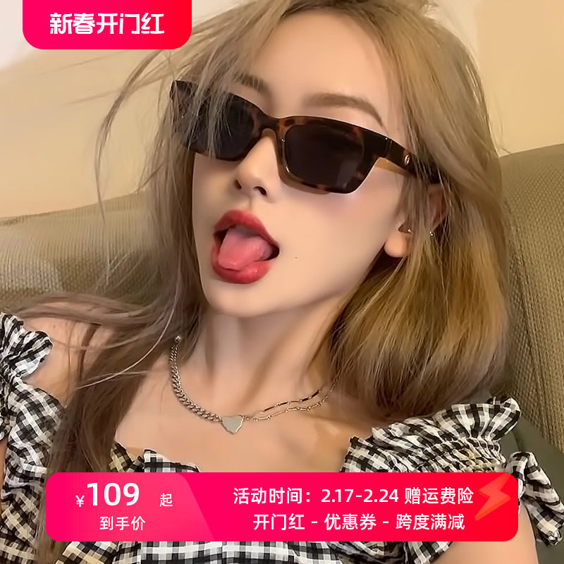 复古豹纹GM墨镜女2023新款高级感 防紫外线防晒太阳眼镜潮小窄框