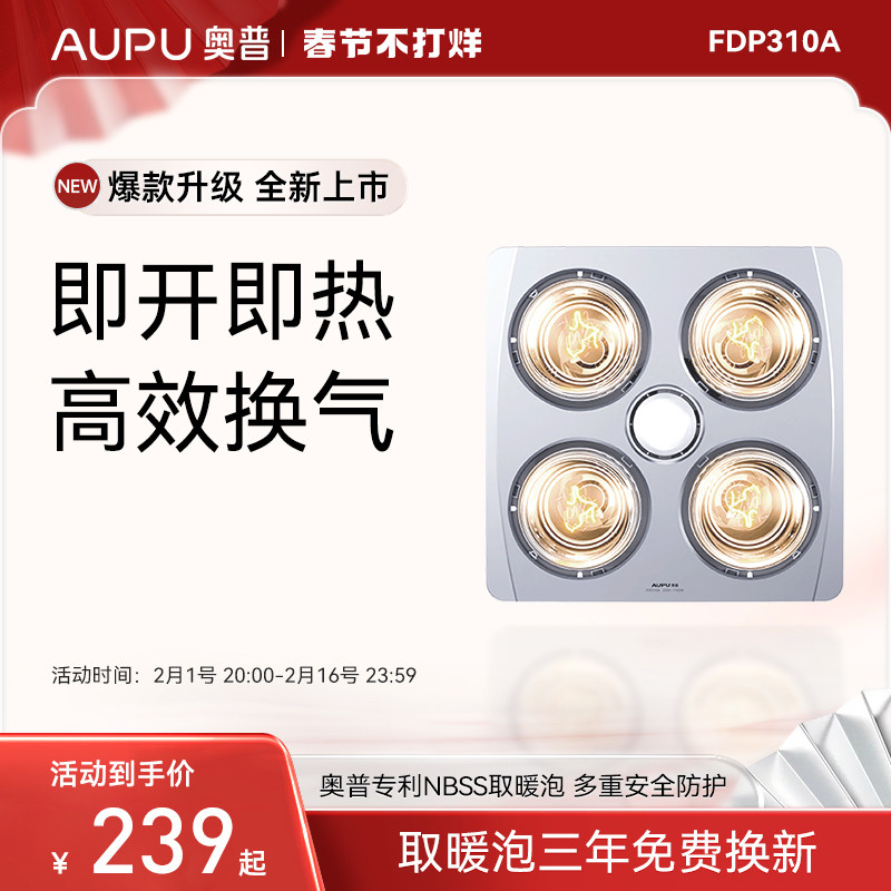 奥普厕所浴霸灯暖嵌入式卫生间壁挂取暖器家用洗澡间取暖灯310A