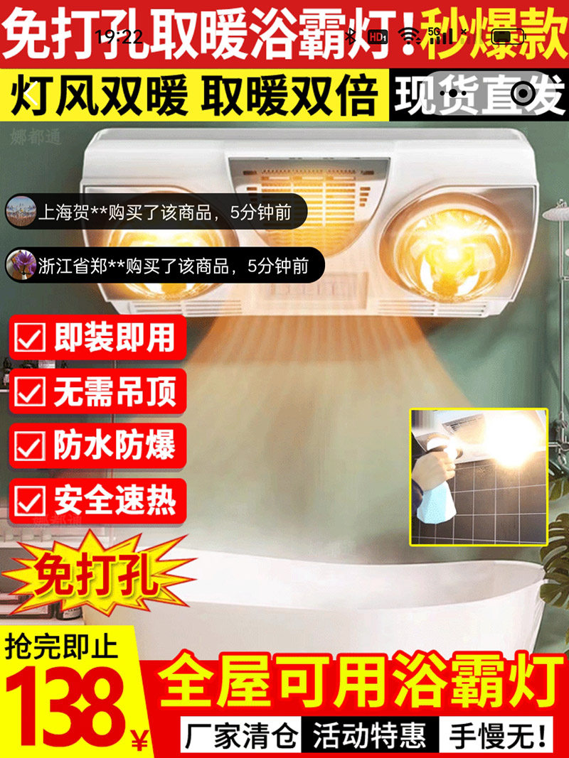 太太美同款免打孔灯暖浴霸冬天洗澡取暖神器挂墙壁挂式保暖取暖灯