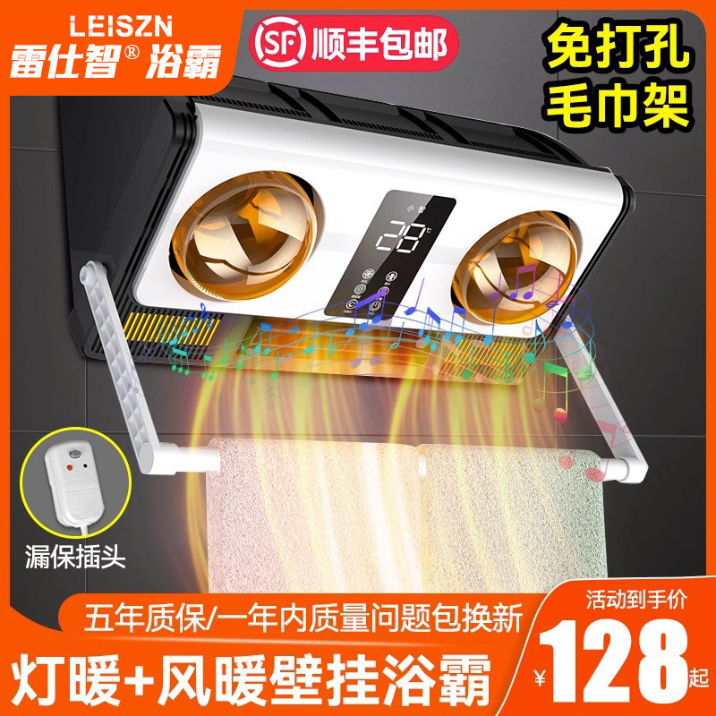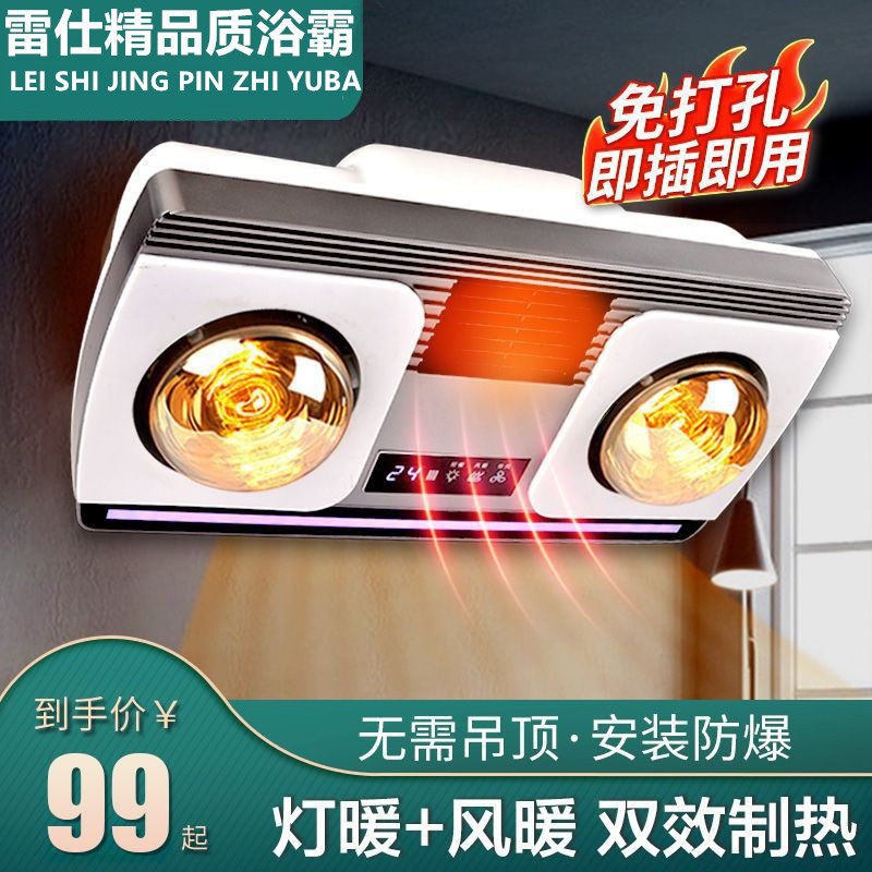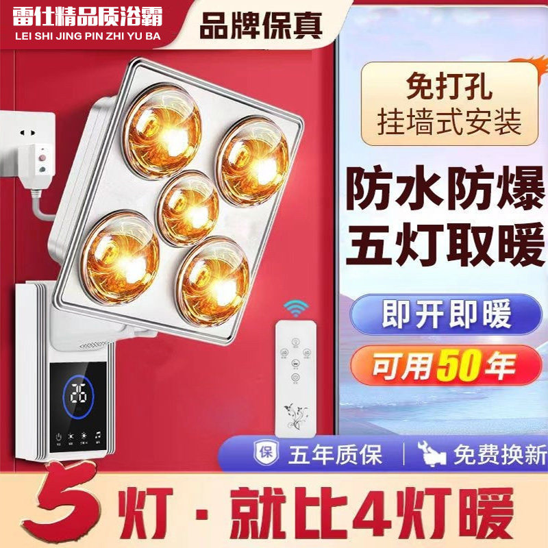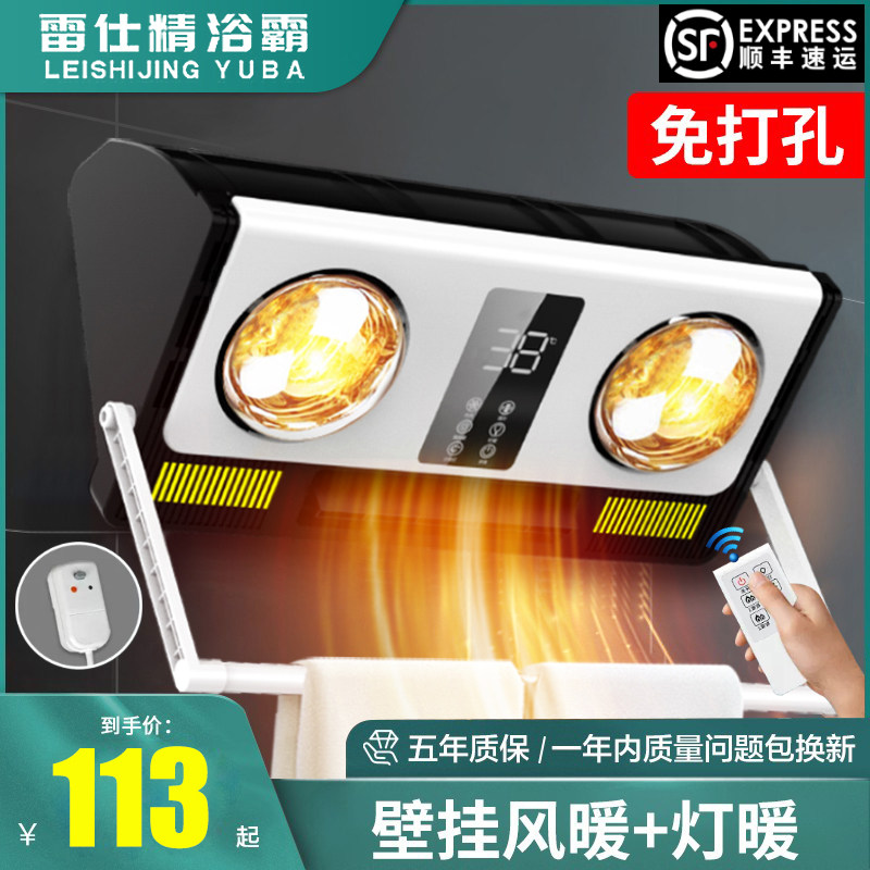 雷仕精壁挂式浴霸卫生间免打孔取暖灯暖风暖一体挂墙防水防爆灯泡