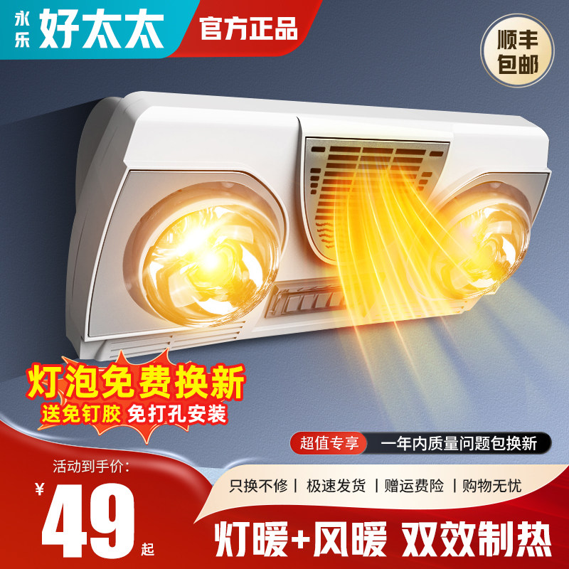 好太太壁挂式浴霸风暖灯暖卫生间浴室挂墙式挂壁免打孔灯泡取暖器