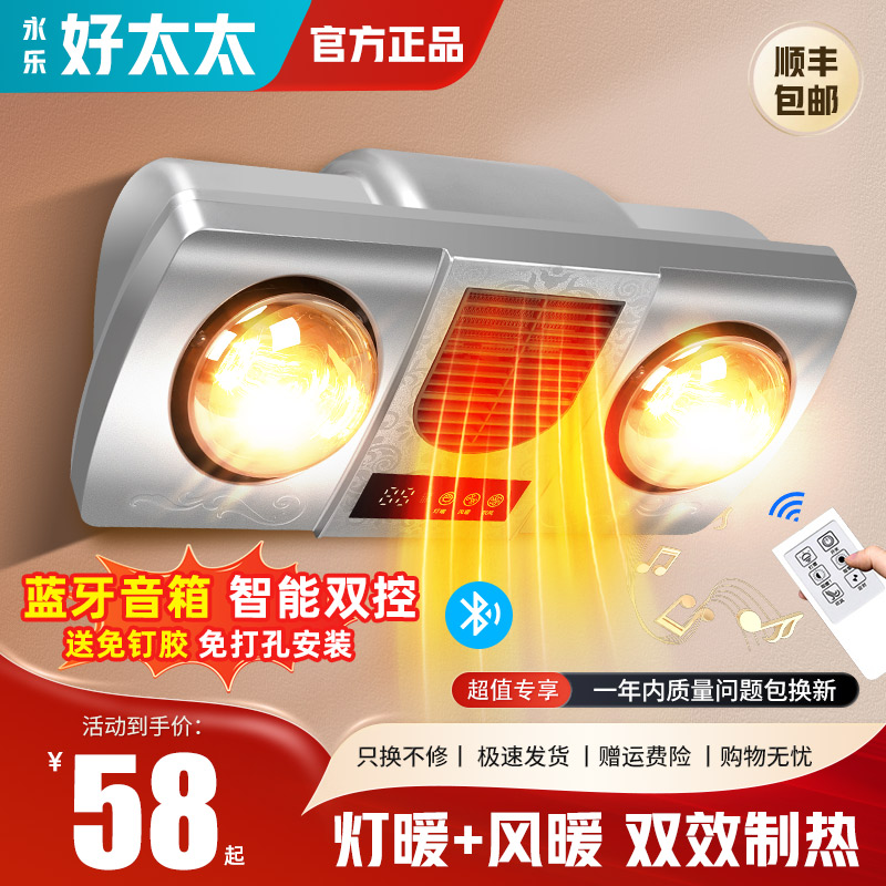好太太壁挂式浴霸卫生间取暖挂墙式暖风机一体免打孔防水防爆灯泡