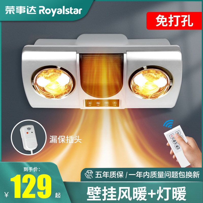 荣事达壁挂式浴霸卫生间免打孔取暖灯暖风暖一体防水防爆灯泡浴室