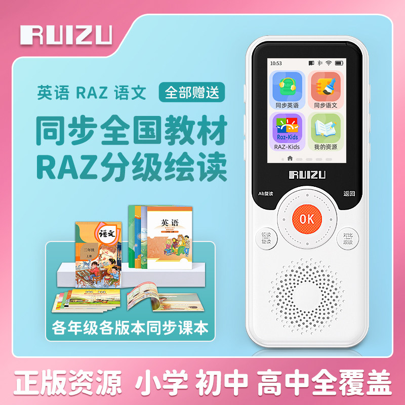 RUIZU锐族V02英语听力宝复读机学生专用小学初中高中教材同步便携儿童口袋学习机磨耳朵记背单词熏听播放器